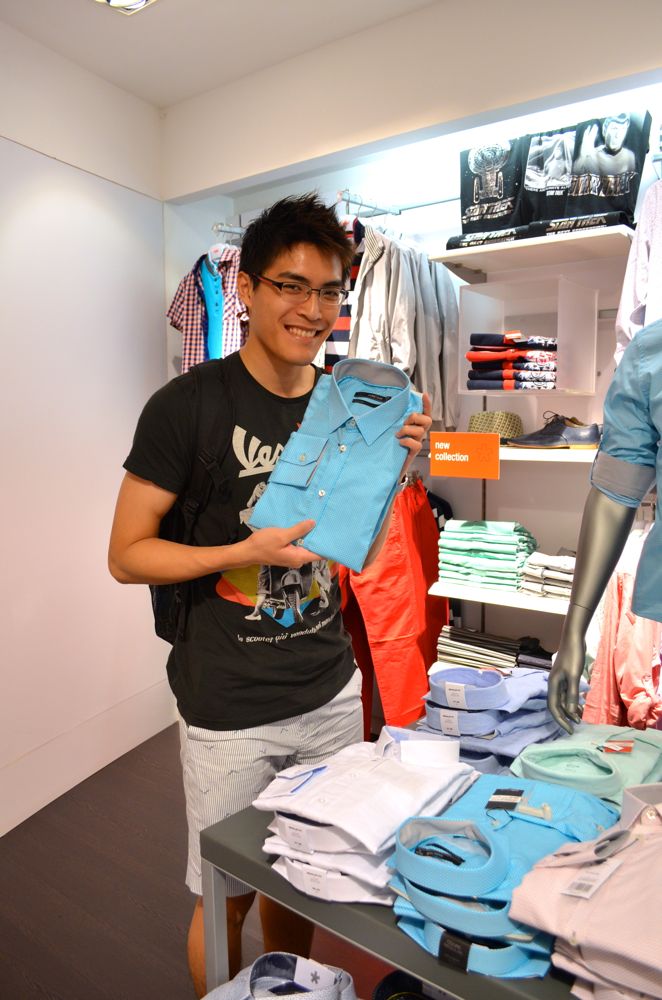 Unfortunately, this brand only caters to the men.. No shopping for me, so B was secretly happy hahaha.. He was happily picking out clothes to try, check out the pic below!